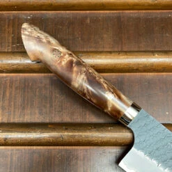 Nigara Hamono SG2 180mm Santoku Kurouchi Tsuchime Stabilized Maple Burl Western Handle