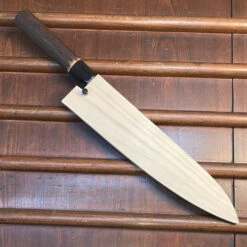 Sakai Kikumori Nakagawa 210mm Gyuto Aogami 1 Kurouchi Burnt Chestnut W/ Saya