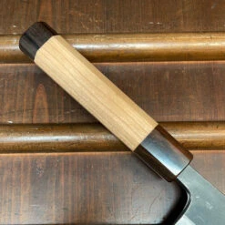 Hitohira Togashi 240mm Gyuto Stainless Clad Aogami 1 Macasser Ebony & Blonde Horn With Saya