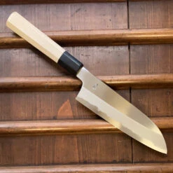 Sakai Kikumori Kikuzuki Kasumi 180mm Santoku Shirogami 2 With Saya