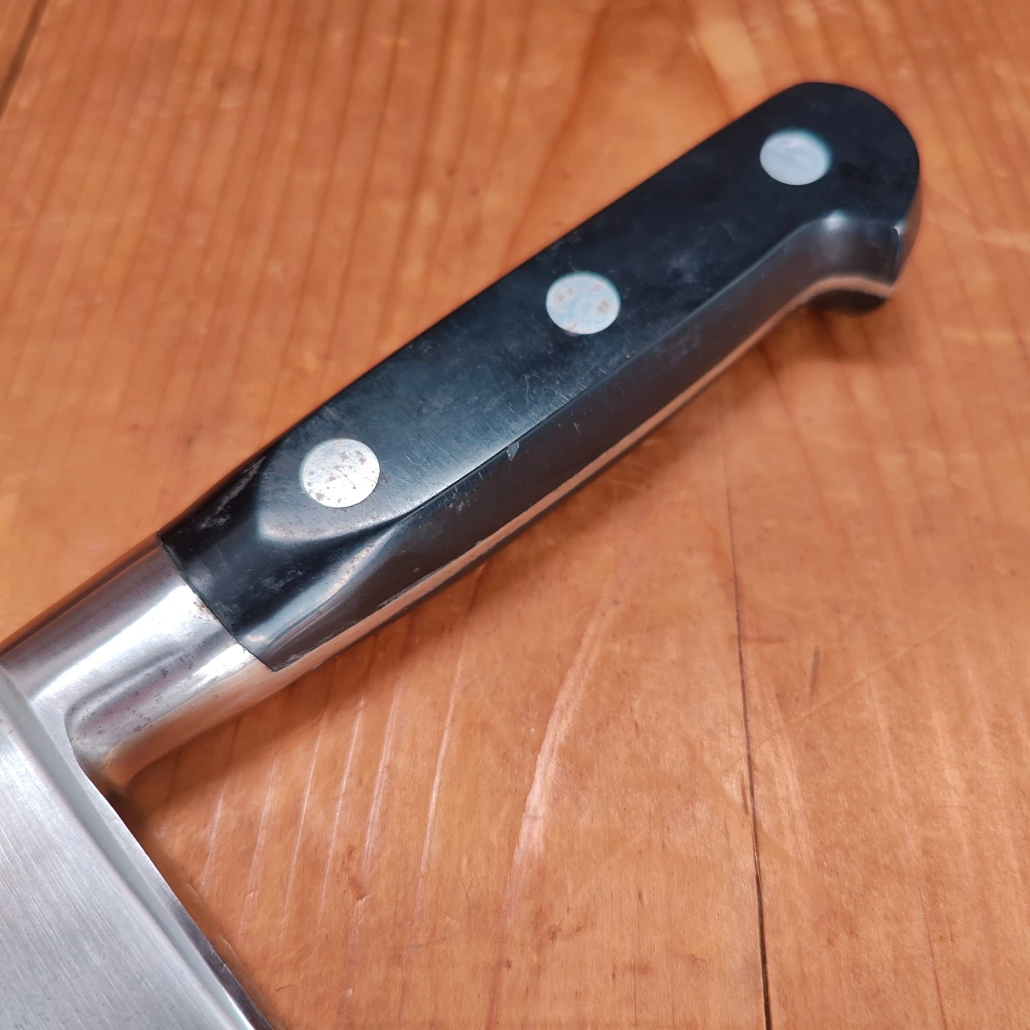 They were hand forged after being drop forged and hand ground on water stones in the old Thiers style. This lends to giving them a great geometry, making them nimble where they need to be and tough in the heel. These are the quintessential post war French chef knife.