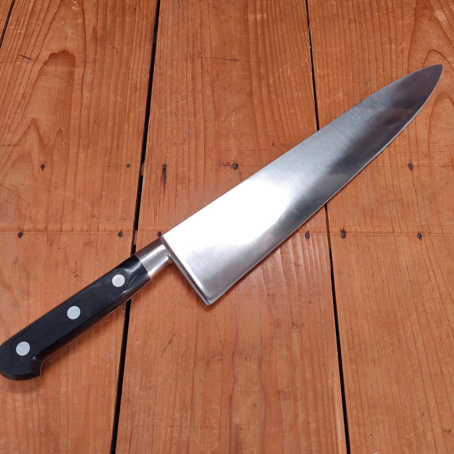 New old stock unmarked 30cm / 11.75″ carbon steel chef knives from the vintage vault! These knives are unmarked, so dating is a little difficult, but they were most likely made in the the 1960’s to 90’s.