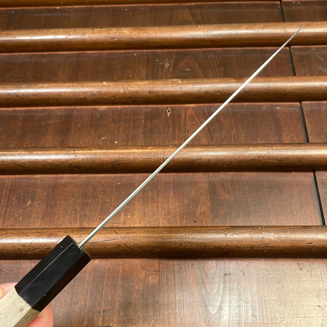 Ashi Hamono was established in 1948 in Sakai City Japan; a major center of traditional knife making. Ashi makes knives utilizing a one piece of steel (rather than forge laminated 2/3 layer blade), called zenkou construction. Ashi’s Ginga line is famous for it’s thinness and precision, utilizing top quality carbon and stainless steels. These knives have an excellent fit and finish, from their grinding to heat treatment and hafting.