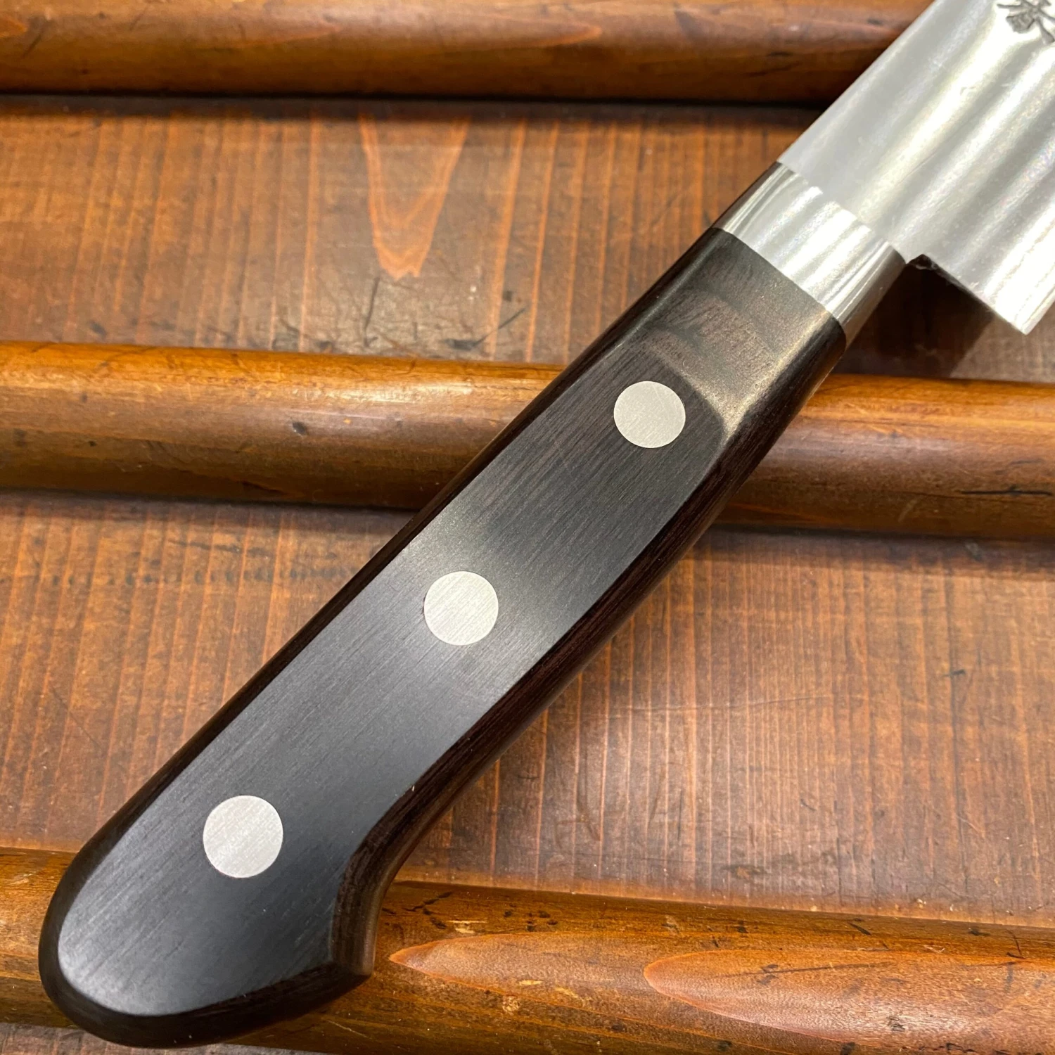 Ashi Hamono was established in 1948 in Sakai City Japan; a major center of traditional knife making. Ashi makes knives utilizing a one piece of steel (rather than forge laminated 2/3 layer blade), called zenkou construction. Ashi’s Ginga line is famous for it’s thinness and precision, utilizing top quality carbon and stainless steels. These knives have an excellent fit and finish, from their grinding to heat treatment and hafting.