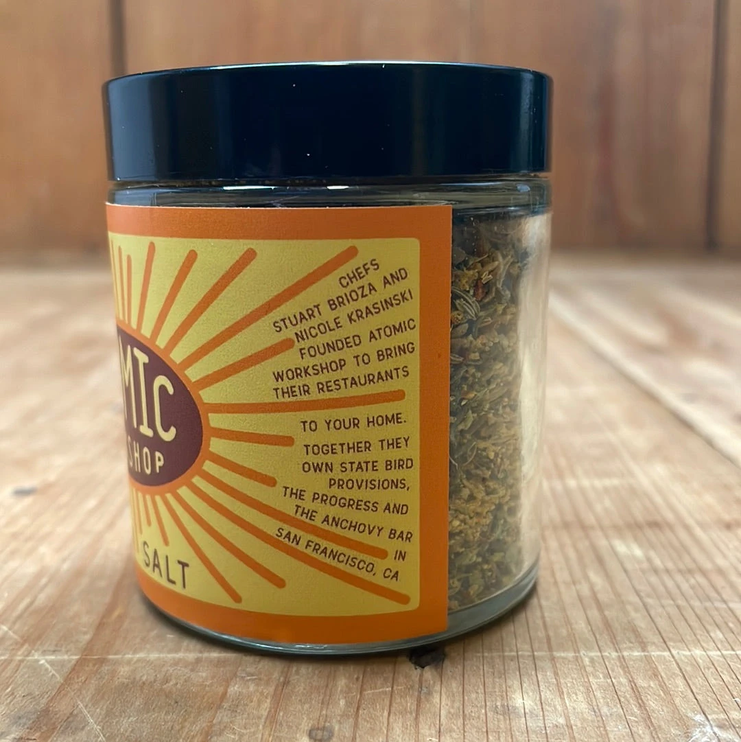 Ingredients: anchovy salt, fennel, coriander, black pepper, chili flake, garlic powder, citrus peel, thyme, oregano