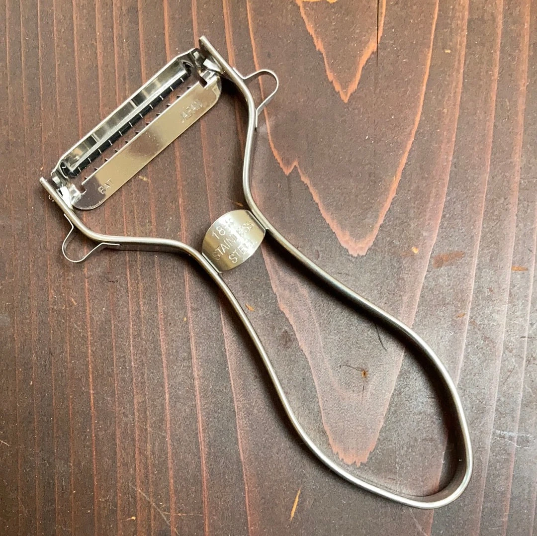 Great for quick julienne cutting on root vegetables. Each cutting tooth has a sharpened bevel allowing this peeler to easily glide while leaving smooth slices. The pulling motion makes it easier to control than a mandolin. Sturdy metal eye removers on each side for a clean final product.