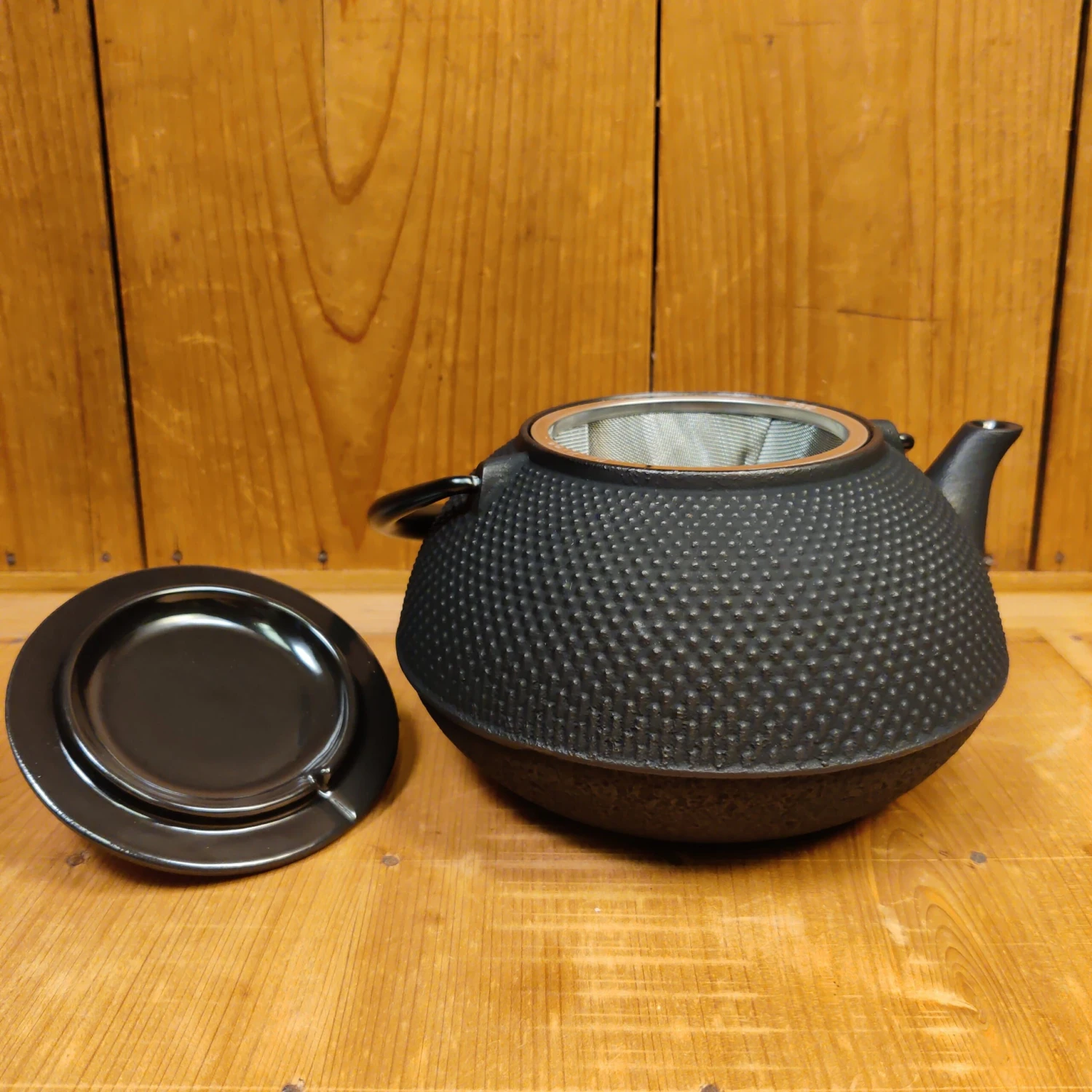 Tetsubin Kuro 8-Arare Black Hobnail design cast iron teapot.