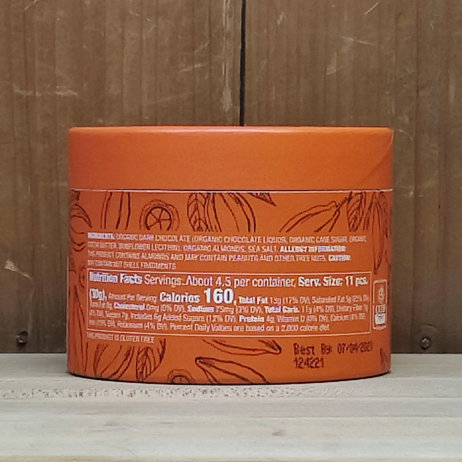 Ingredients: Organic Dark Chocolate (Organic Chocolate Liquor, Organic Cane Sugar, Organic Cocoa Butter, Sunflower Lecithin), Organic Almonds, Sea Salt.