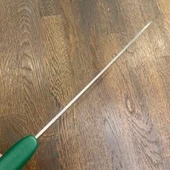 10″ stainless steel bullnose butcher’s knife with green plastic ergonomic handle from the Pikas-Don Carlos line.