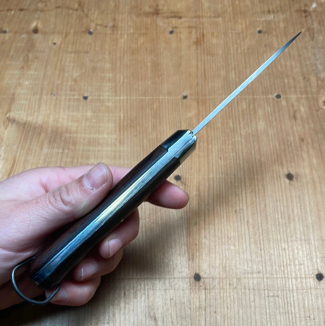 Friedr. Herder Abr Sohn company is the longest continually operating knife making operation in Solingen Germany. It’s famous Pikas spade logo was registered in 1727 although their place in Solingen’s blade making traces further back. Friedr Herder has kept many old patterns in carbon steel in production and offers a variety of new production knives for professionals and home cooks. We are happy to include these in our lineup. When looking for old knives seeing that Herder handle with the spade rivet peeking out is always exciting, we think it’s still true of the new production knives as well.