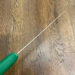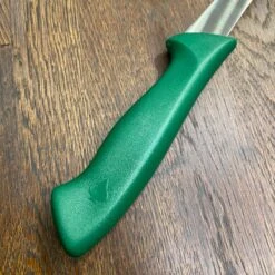 6″ stainless steel curved flex boning knife with green plastic ergonomic handle from the Pikas-Don Carlos line.