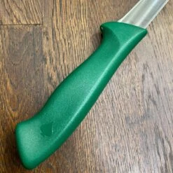 10″ stainless steel bullnose butcher’s knife with green plastic ergonomic handle from the Pikas-Don Carlos line.