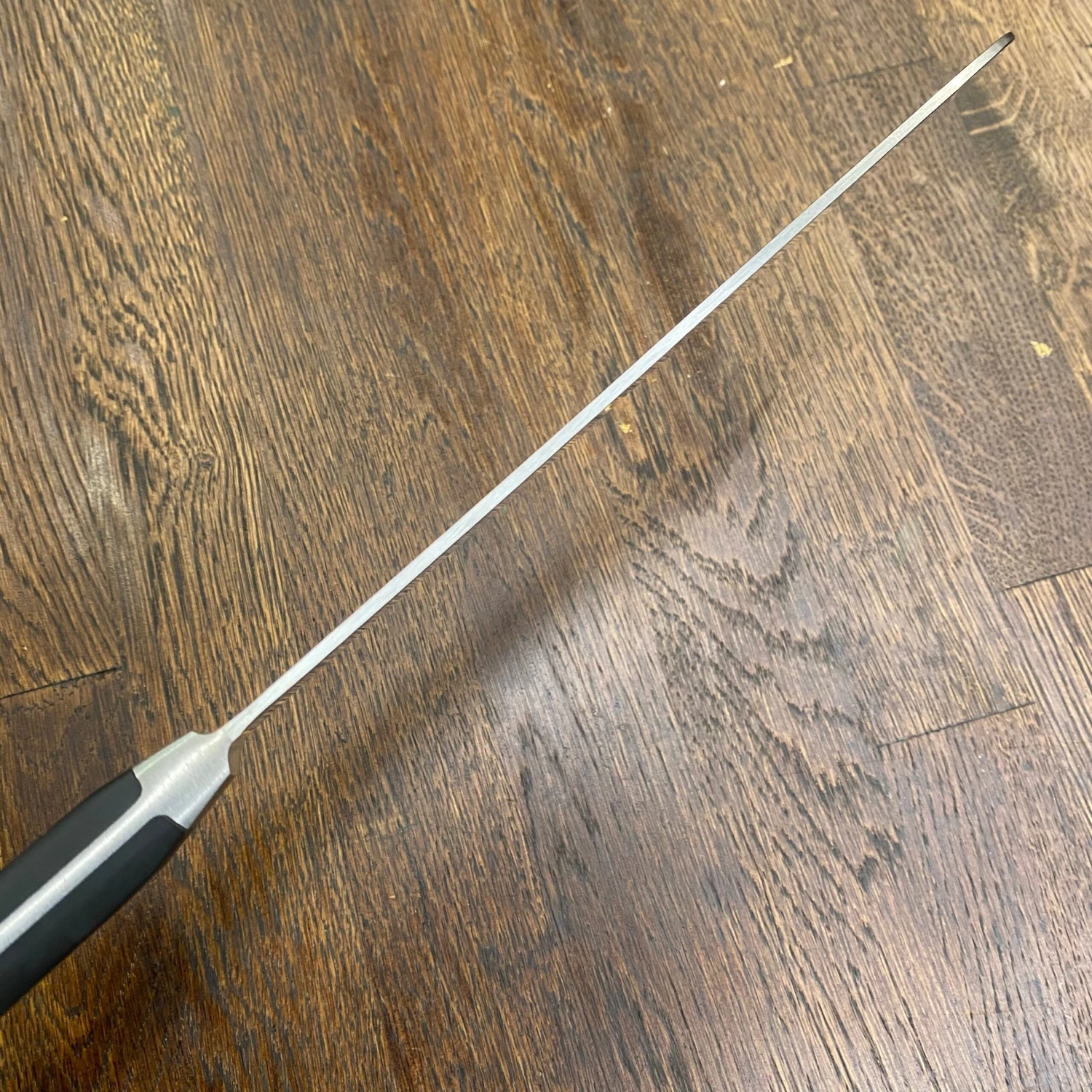 Friedr. Herder Abr Sohn company is the longest continually operating knife making operation in Solingen Germany. It’s famous Pikas spade logo was registered in 1727 although their place in Solingen’s blade making traces further back. Friedr Herder has kept many old patterns in carbon steel in production and offers a variety of new production knives for professionals and home cooks. We are happy to include these in our lineup. When looking for old knives seeing that Herder handle with the spade rivet peeking out is always exciting, we think it’s still true of the new production knives as well.