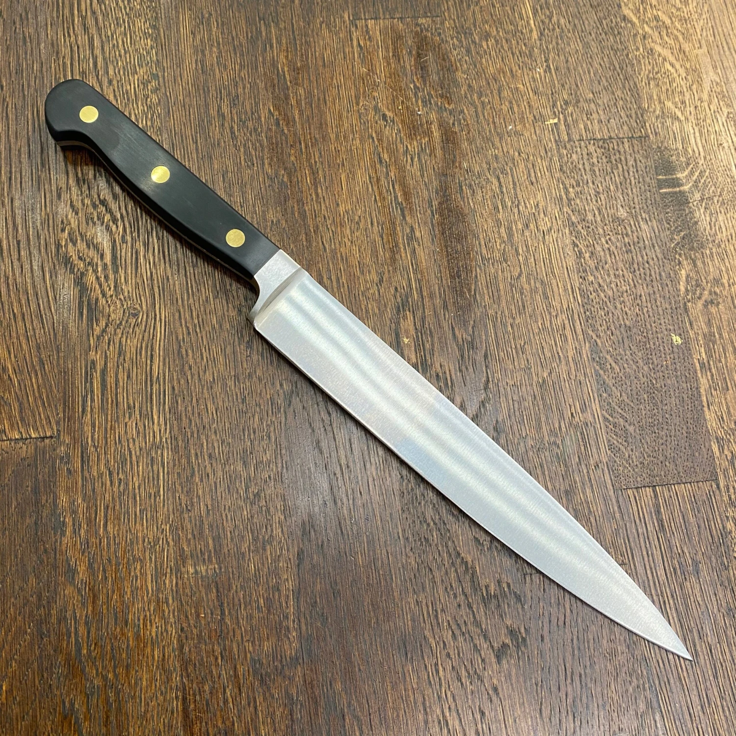 Friedr. Herder Abr Sohn company is the longest continually operating knife making operation in Solingen Germany. It’s famous Pikas spade logo was registered in 1727 although their place in Solingen’s blade making traces further back. Friedr Herder has kept many old patterns in carbon steel in production and offers a variety of new production knives for professionals and home cooks. We are happy to include these in our lineup. When looking for old knives seeing that Herder handle with the spade rivet peeking out is always exciting, we think it’s still true of the new production knives as well.