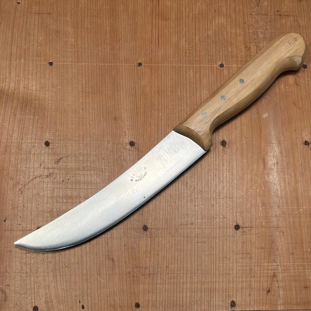 An unusual shape, wider and more curved than a boning knife but in a smaller compact size.