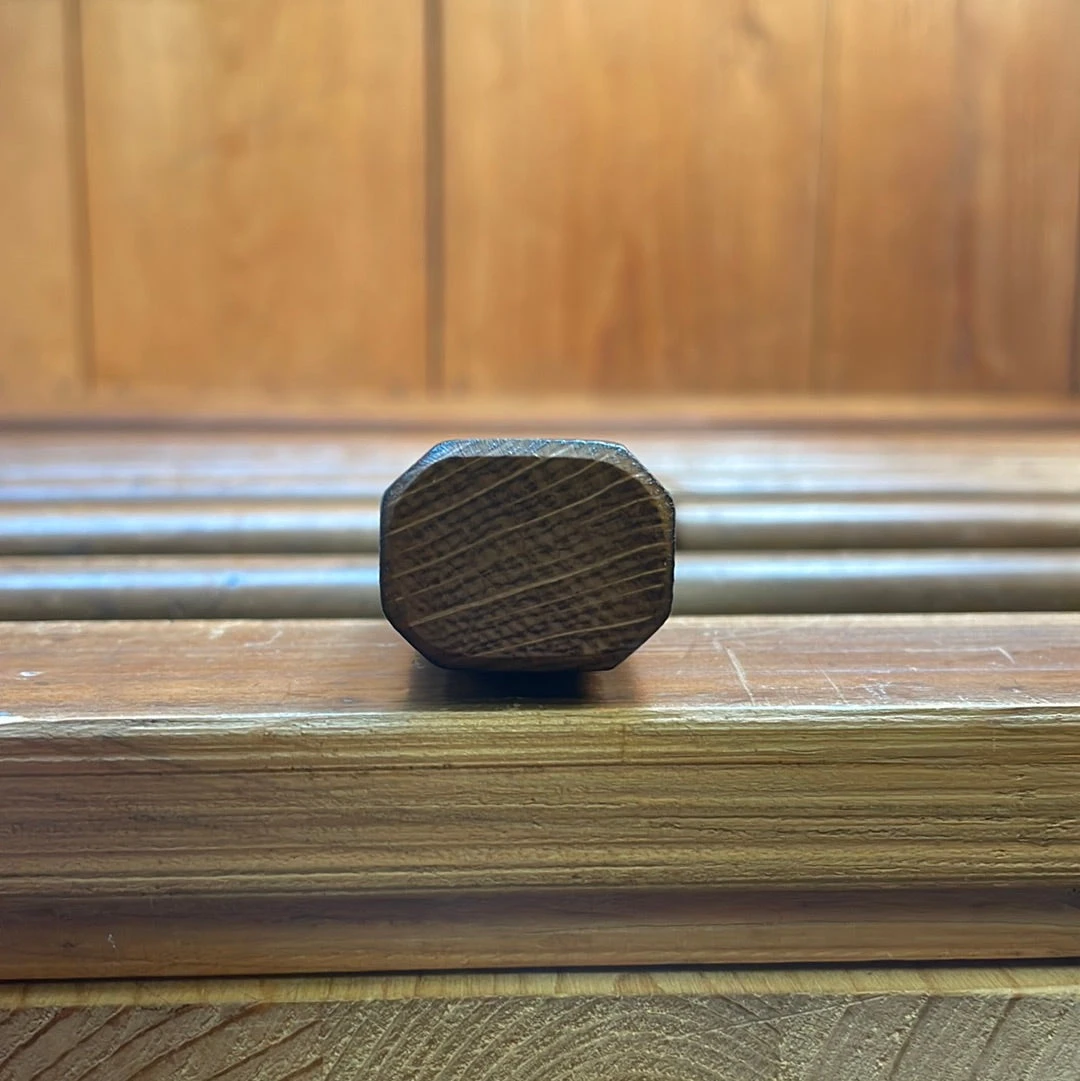 Blade is hand forged shirogami #2 with a rustic style kurouchi finished soft iron cladding. Handle is octagonal burnt oak sealed with a thin clear urushi lacquer coating.