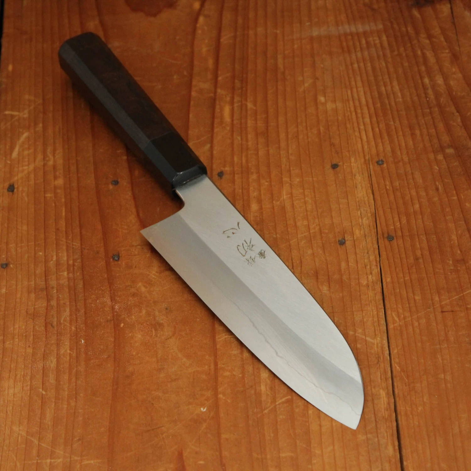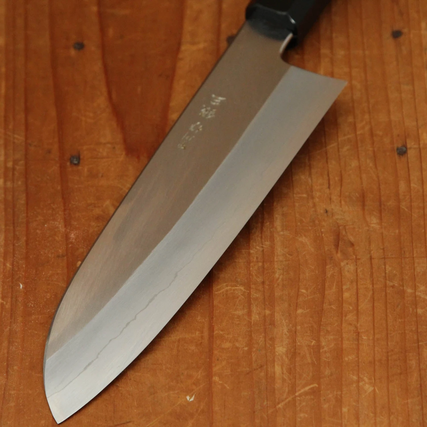 Nakagawa-san’s knives are characterized by superb edge formation and edge life with good toughness. This is due to excellent heat control during forging and a very thorough heat treatment. His carbon steels are easy to sharpen across most steel types. Nakagawa-san is one of only a few blacksmiths in Sakai to forge Ginsanko and VG10 stainless steels. His ginsanko is one of the best we have used and sharpened, with superb edge life, toughness and edge formation.