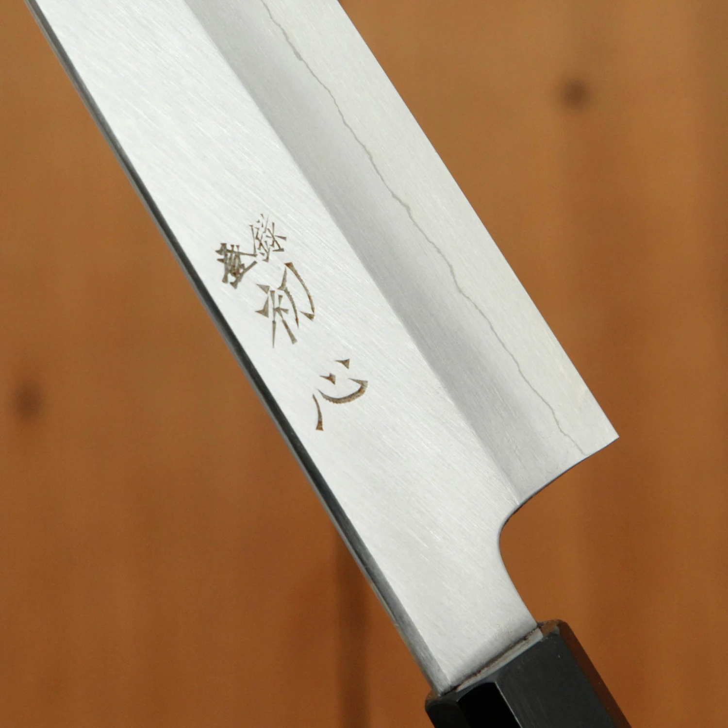 These knives feature super fine grinding by Morihiro, known for his single and wide double bevel grinding work. Morihiro was instrumental in bringing Sakai’s tradition of single bevel grinding to double bevel wa-hocho. He was the sole sharpener of the Konosuke Fujiyama line (until 2018) and also works on the Sakai Kikumori Choyo series as well as other projects from Sakai.