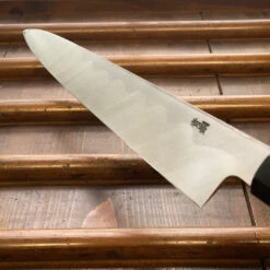 Hand forged and ground in Sakai, the Kikuchiyo Manzo series knives from Hitohira represent excellent Sakai craftsmanship. These are characterized by a forging and heat treatment that offers an easy sharpening, good toughness and excellent edge life.