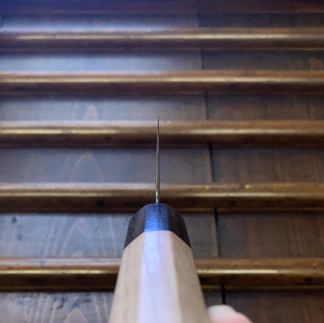 Hand ground proprietary Japanese stainless steel with excellent sharpenability and edge formation and good edge life. These are ground with slightly convex faces making for smooth cutting and good food release.