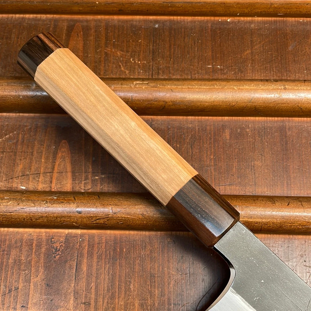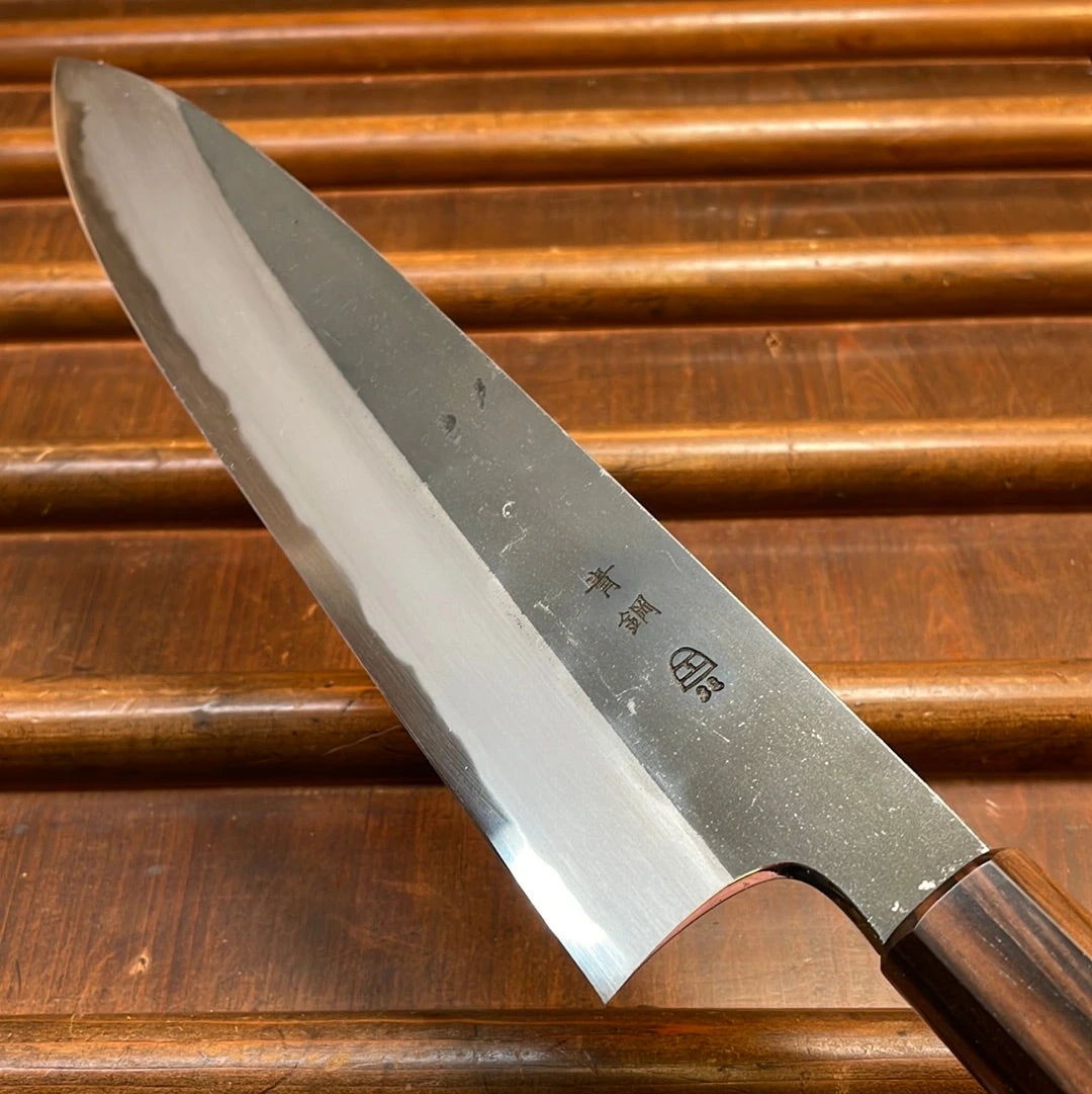 Hand made in Sakai, kurouchi finished iron clad Aogami #2 forged by dentoukougeishi master smith Kenji Togashi and expertly ground by his son Kenya.