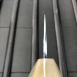These are super easy to sharpen with a great cutting duration and smooth cutting feel with nicely finished corners. Slightly larger than usual geometry for a Sakai gyuto but still following in that style. Macasser ebony and light colored horn handle are a nice compliment.