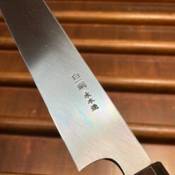 Hand made in Sakai, iron clad shirogami #1 forged by dentoukougeishi master smith Kenji Togashi and expertly ground by his son Kenya.