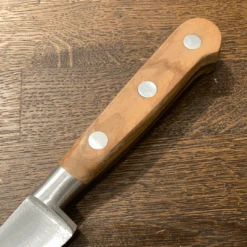 K Sabatier’s ‘Authentique’ series stainless knives are drop forged from a single piece of Z50C13 steel and tempered to 54-56 HRC. They are ground extra thin behind the edge for awesome cutting feel, are easy to sharpen and have some toughness as well, a great all around workhorse. No Dishwasher.