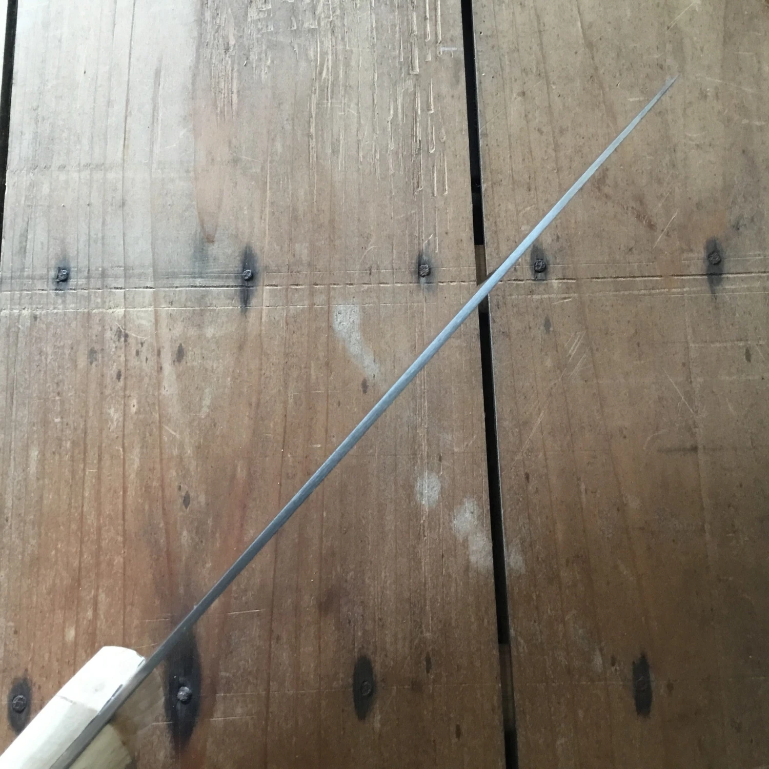 K Sabatier 8″ Boucher. Carbon steel blade with riveted beech wood handle. Keep dry to avoid rust. No Dishwasher.