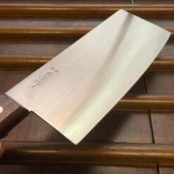 Chukka bocho or Japanese style Chinese cleaver with SK carbon steel blade and rosewood handle, great for vegetables and boneless meat. While the term ‘Chinese cleaver’ is used for this general style of knife “Chinese chef knife’ might be better as these are not heavy like a butcher’s cleaver and are not suited for hitting bones.