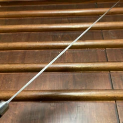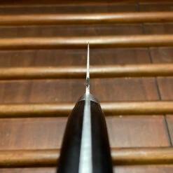 New production classic old style Japanese double bevel knife with a monosteel SK tool steel blade and riveted pakka wood western style handle. Their thin SK mono-steel blades cut very nicely and are super easy to sharpen and get a nice edge that holds well. They are ideal for the professional or home cook who is looking for a carbon steel workhorse with easy sharpen-ability at a reasonable price.