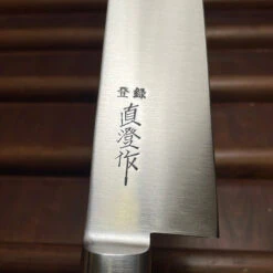 New production classic old style Japanese double bevel knife with a monosteel SK tool steel blade and riveted pakka wood western style handle. Their thin SK mono-steel blades cut very nicely and are super easy to sharpen and get a nice edge that holds well. They are ideal for the professional or home cook who is looking for a carbon steel workhorse with easy sharpen-ability at a reasonable price.