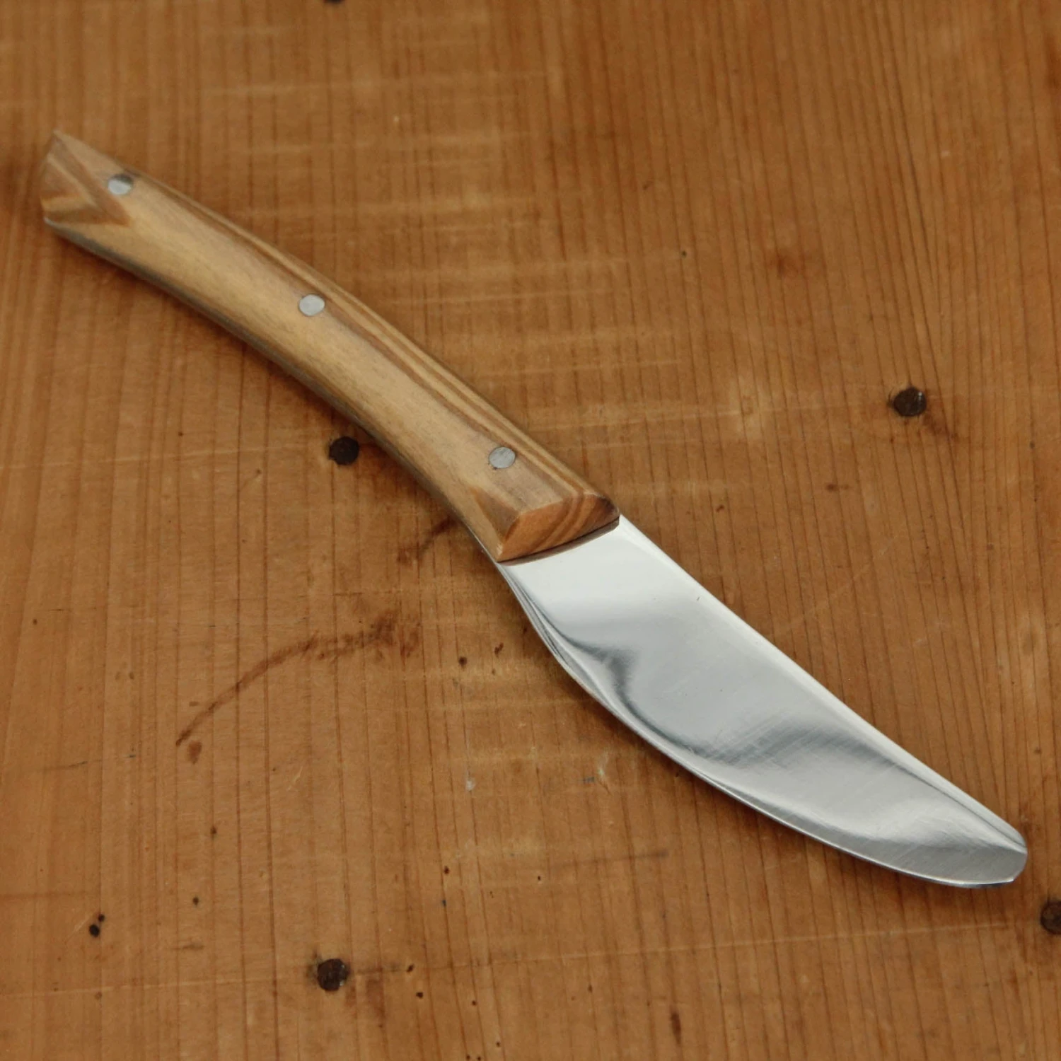 Classy little knife for butter, pate and soft cheeses. Stainless blade with olive wood handle. Hand wash and dry only.