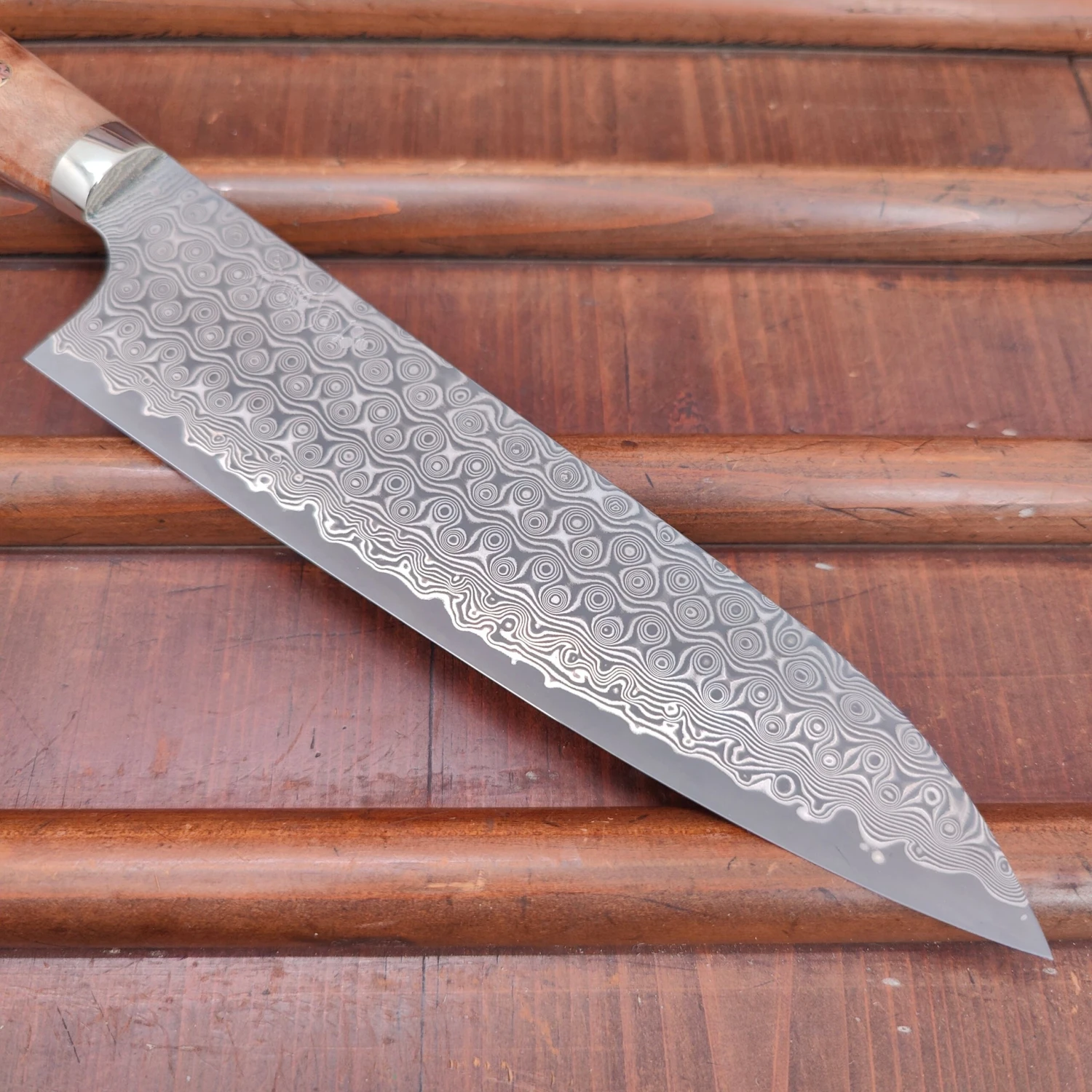 Nigara Hamono SG2 210mm Gyuto Damascus Stabilized Maple Burl Western Handle