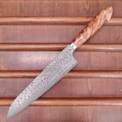 Be the first to review “Nigara Hamono SG2 240mm Gyuto Damascus Stabilized Maple Burl Western Handle” Cancel reply