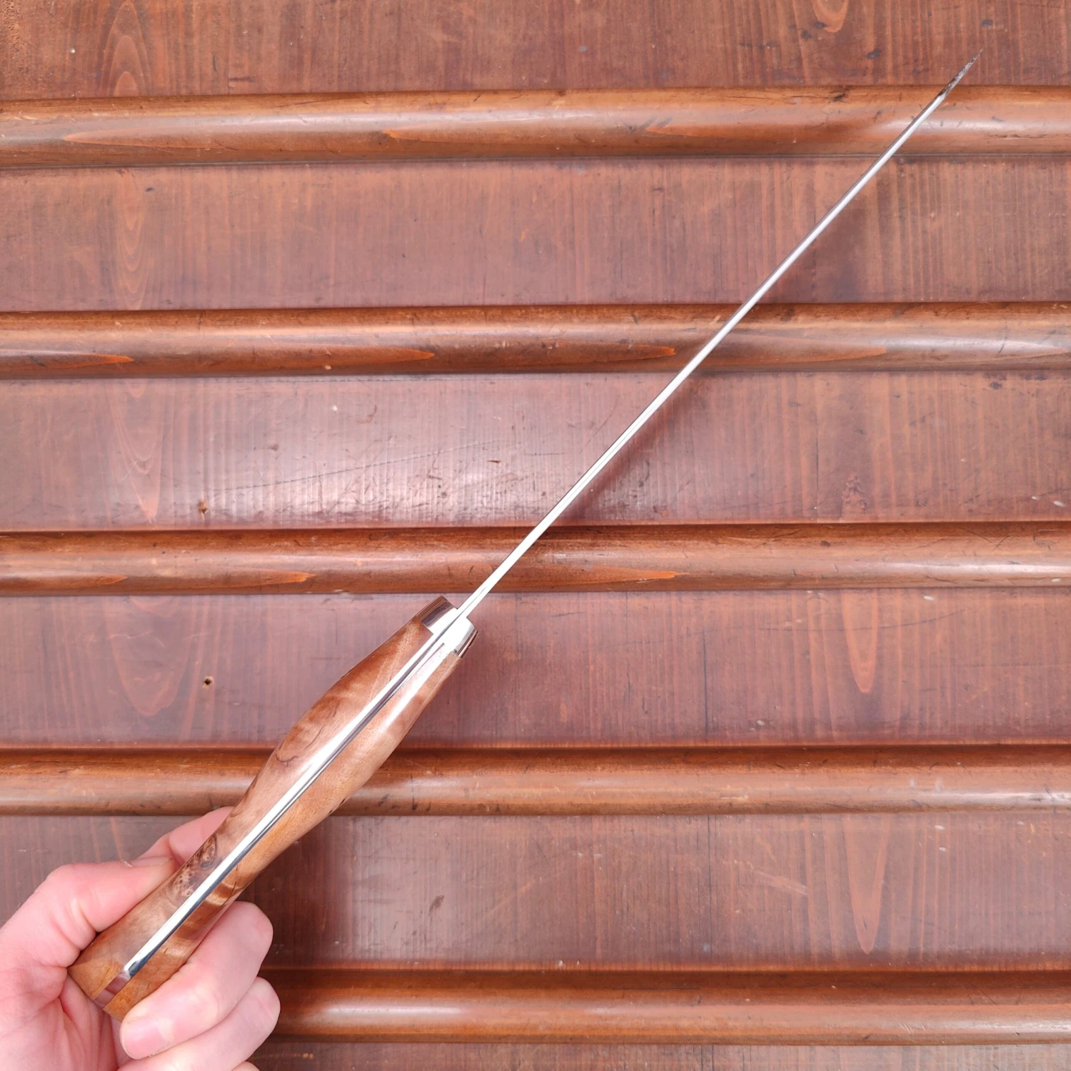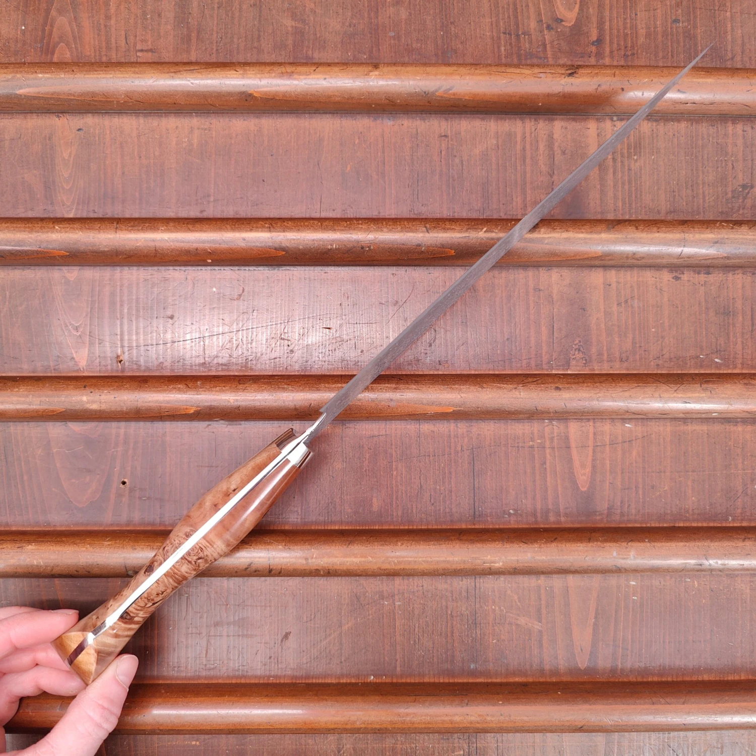 Be the first to review “Nigara Hamono SG2 240mm Kiritsuke Gyuto Damascus Stabilized Maple Burl Western Handle” Cancel reply