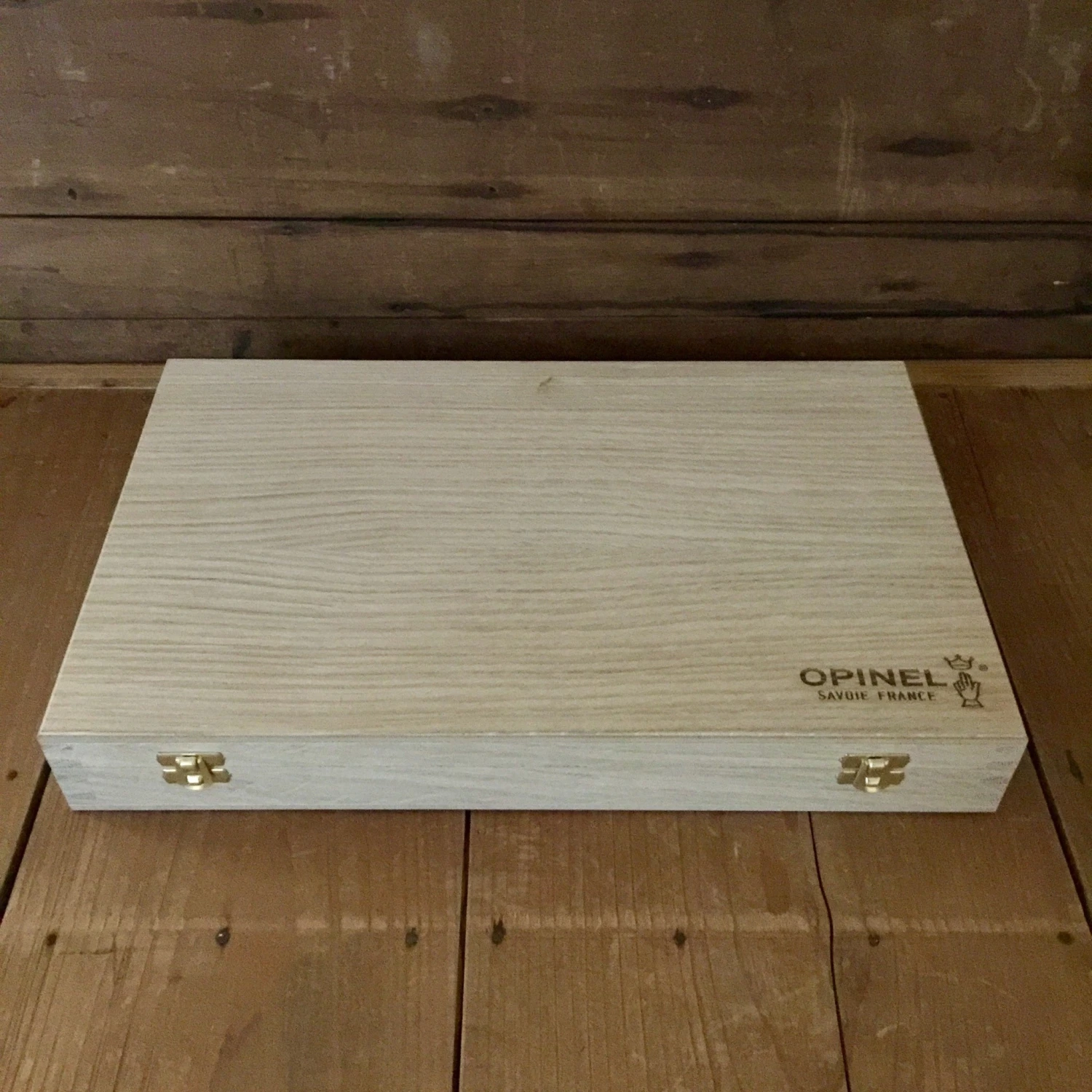 Opinel Stainless Steel Collector’s Case. 10 Piece set with wood collector’s box. Sizes #2 to #12.