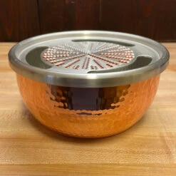 Steel oroshigane grater lit with hand hammered copper bowl. Made in Japan.