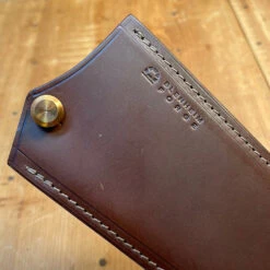 Mid brown Italian vegetable tanned leather sheath for Blenheim Forge Classic Range Bunka handcrafted by Harry Owen of Owen Leather in Peckham London.
