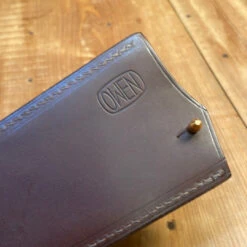 Mid brown Italian vegetable tanned leather sheath for Blenheim Forge Classic Range Gyuto handcrafted by Harry Owen of Owen Leather in Peckham London.