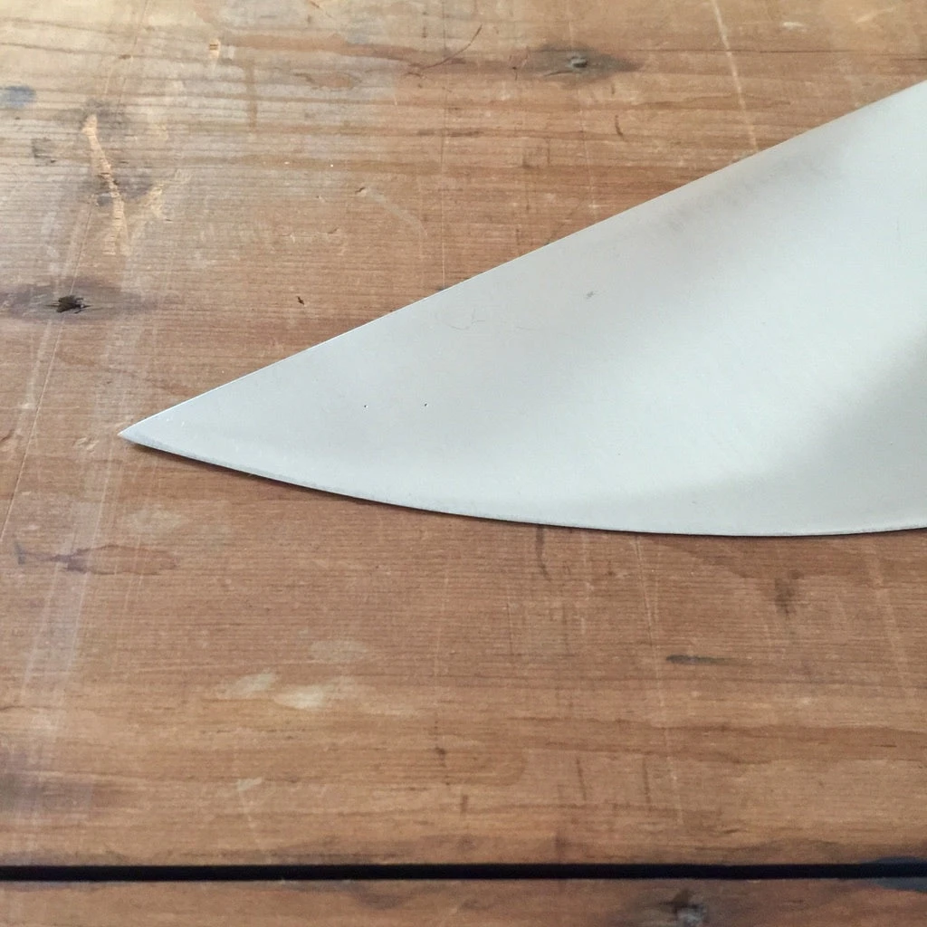 Stainless steel is durable and resistant to rust and patina, but maintain with care. Hand wash & dry, no dishwasher. Hardwood-end grain or softwood long grain cutting boards are preferred; avoid bamboo and plastic cutting boards.