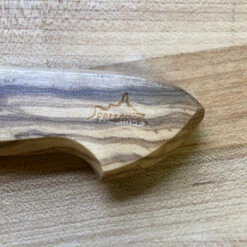 Pallares 4.75″ Table Knife. A classic steak knife shape; wide stainless steel blade with large, steel pinned olive wood handles. Equally appropriate in both a rustic and refined table setting.