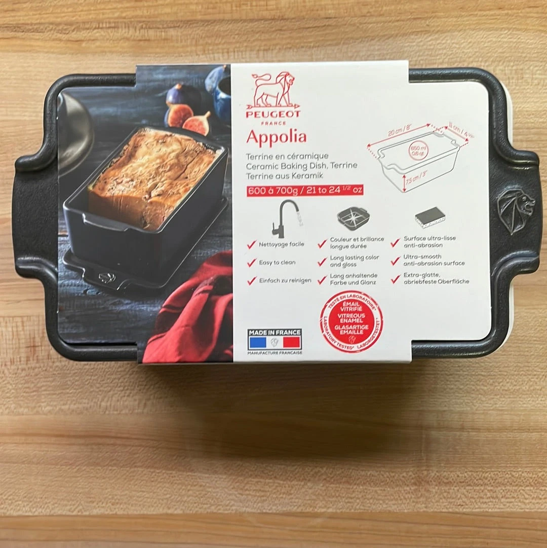The Peugeot Ceramic Foie Gras Terrine is available in a contemporary version, featuring a satin-feel and slate-gray finish to fit perfectly on the most modern tables. Elegant handles on the terrine and the lid help display your delicious homemade dishes on the table. You will be able to enjoy perfect homemade foie gras, terrines or pâtés, 600 to 700G; it will taste even better when shared with friends!