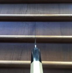 The double bevel knives from this series cut nearly effortlessly but still have an authoritative solid feel. However, these knives are ground very thin behind the edge and will not tolerate mistreatment.