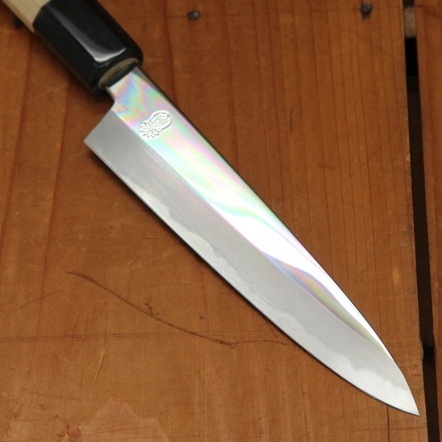 Shirogami #2 is very responsive to sharpening stones, taking an extremely fine but biting edge easily. It is a highly reactive carbon steel.