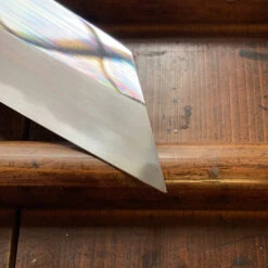 Shirogami #2 is very responsive to sharpening stones, taking an extremely fine but biting edge easily. It is a highly reactive carbon steel.