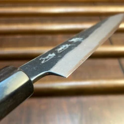 These knives represent a blend of the rustic and the refined. They have a dark forge-scale ‘kurouchi’ finish and exceptionally thin grinds to support the superb forging. Nakagawa-san’s smithing is characterized by thorough heat treatment with excellent heat control during forging. The result are knives that have remarkable edge formation and edge retention while remaining tough.