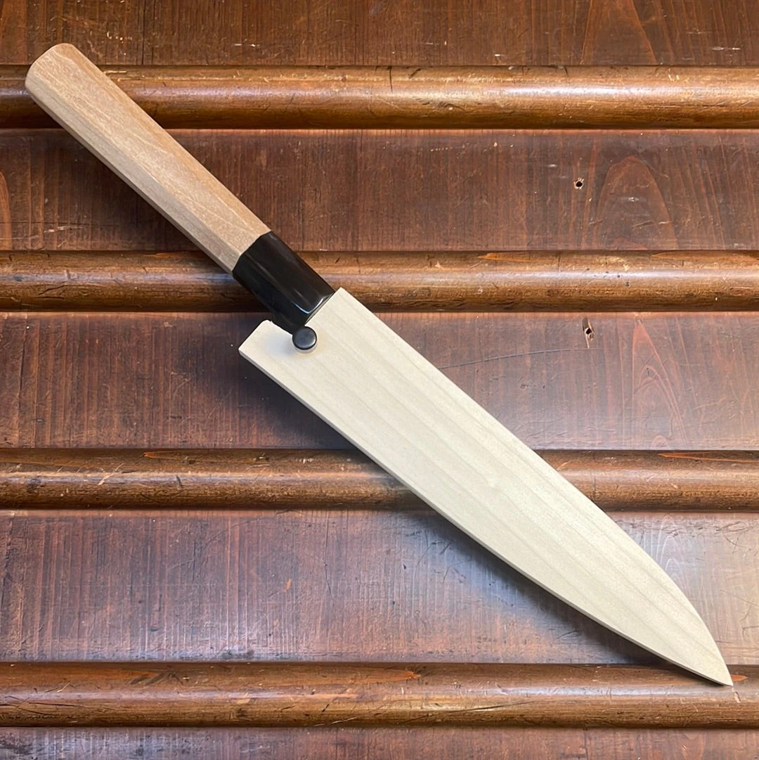We are proud to introduce as the sole North American retailer, knives done as a collaboration between Sakai Kikumori and Nakagawa Hamono. Inspired by a conversation with Bernal Cutlery’s Lisa and Josh with Sakai Kikumori, Kawamura-san at Kikumori asked what we would like to see, and shirogami 1 and aogami 1 kurouchi gyutos from Nakagawa Hamono came to mind.