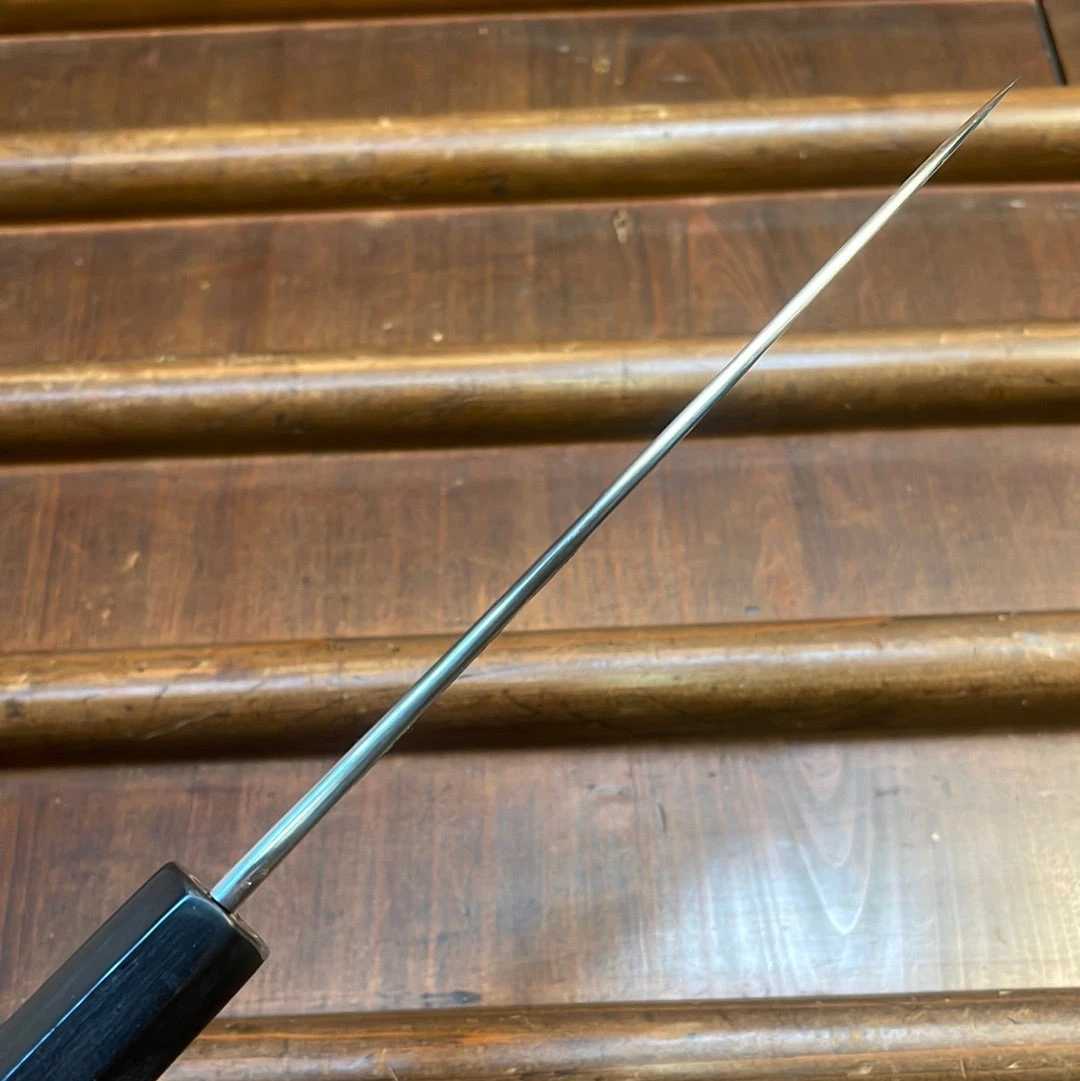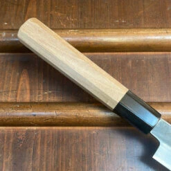 These knives represent a blend of the rustic and the refined. They have a dark forge-scale ‘kurouchi’ finish and exceptionally thin grinds to support the superb forging. Nakagawa-san’s smithing is characterized by thorough heat treatment with excellent heat control during forging. The result are knives that have remarkable edge formation and edge retention while remaining tough.