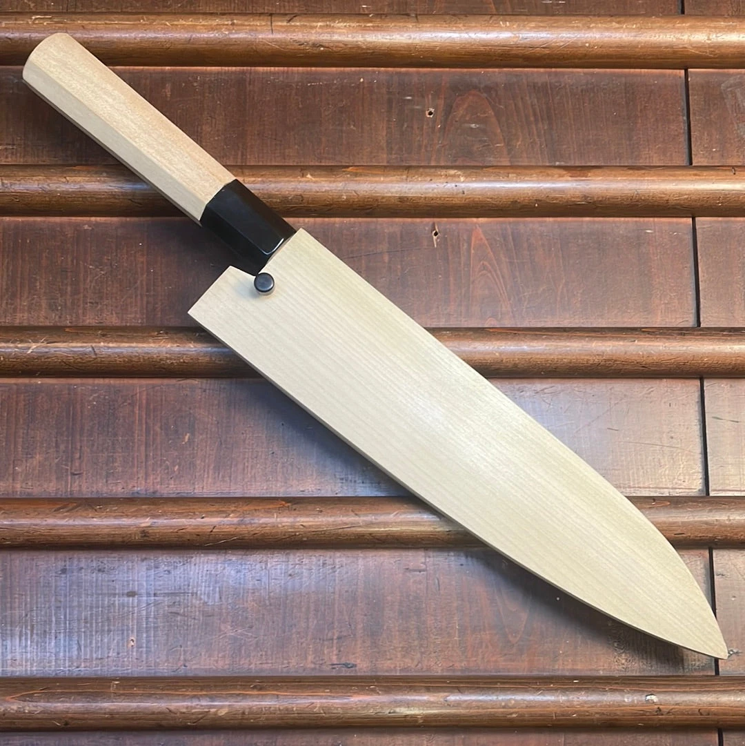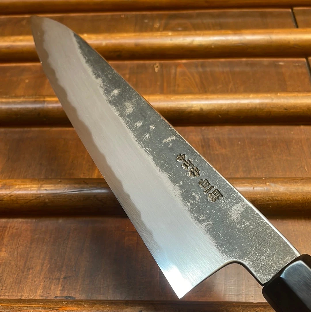 We are proud to introduce as the sole North American retailer, knives done as a collaboration between Sakai Kikumori and Nakagawa Hamono. Inspired by a conversation with Bernal Cutlery’s Lisa and Josh with Sakai Kikumori, Kawamura-san at Kikumori asked what we would like to see, and shirogami 1 and aogami 1 kurouchi gyutos from Nakagawa Hamono came to mind.